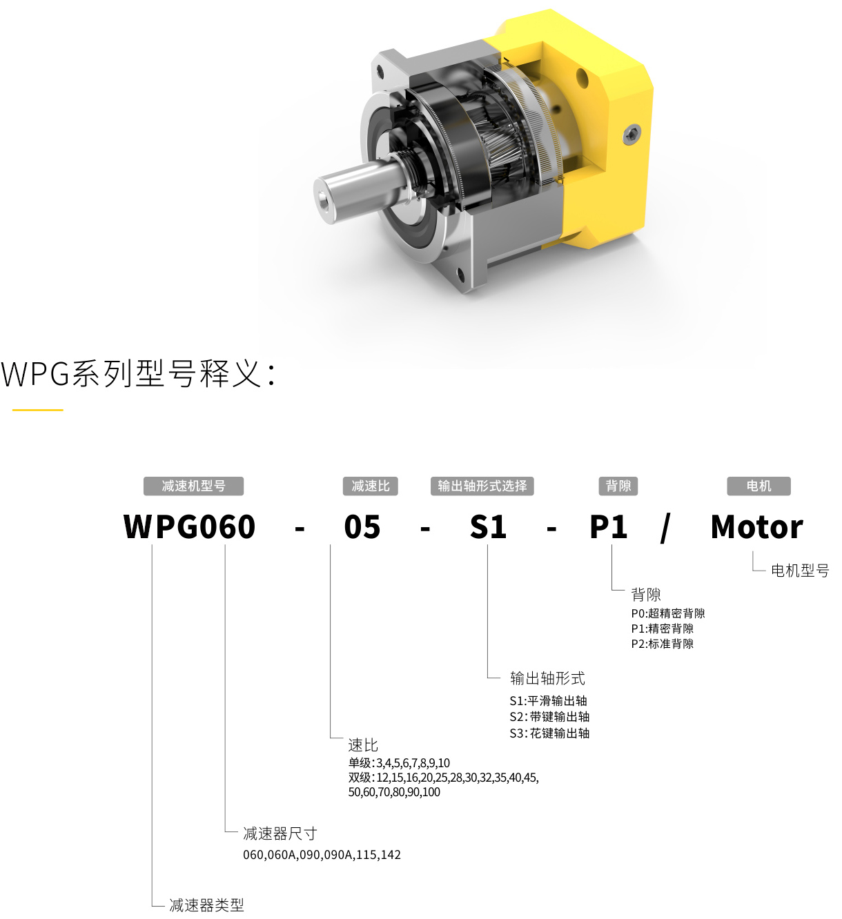 WPG是高精密行星齒輪和高效軸承科技完美結(jié)合的產(chǎn)物。專為需要保證高轉(zhuǎn)速、低噪音的同時達到最優(yōu)化性能的應(yīng)用而設(shè)計。借助高剛性的結(jié)構(gòu)、高精密的斜齒,運行平穩(wěn)、安靜,更具有強勁的性能。